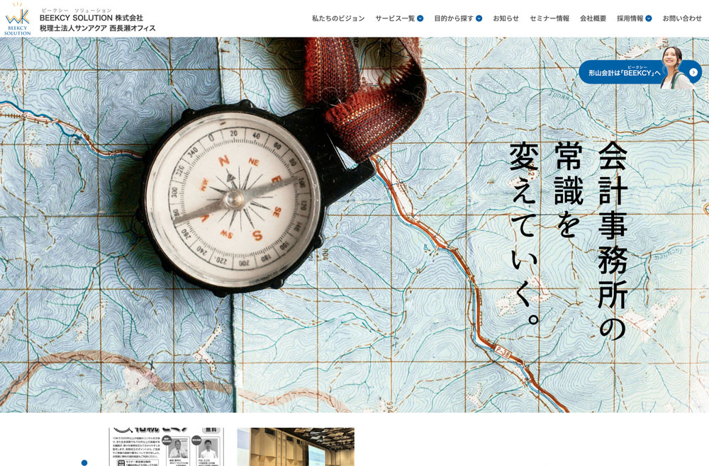 会計事務所の持つ「画一的」「敷居が高い」「変化を嫌う 」といった印象をガラッと変えたい、という新代表の想いをWebデザインに反映。今までのクリーンで真面目な雰囲気ではなく、野心的でチャレンジングなサイトに生まれ変わりました。