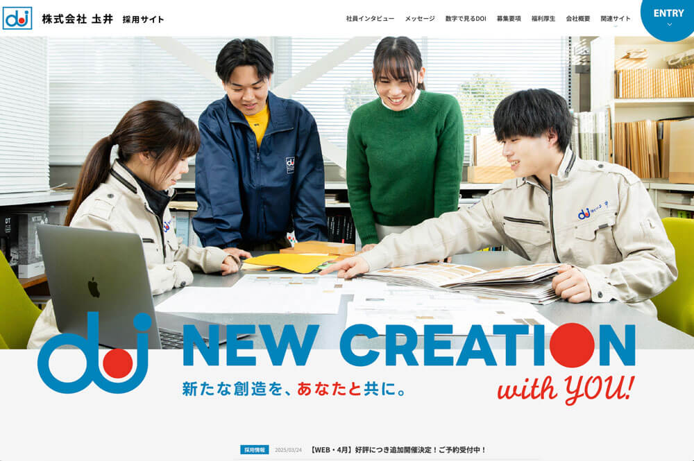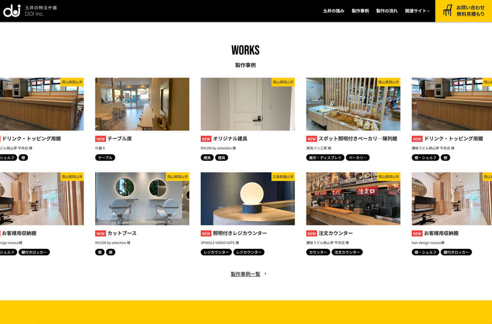 飲食店、美容院、クリニックなど幅広い店舗設計・施工を手掛けてきた株式会社土井。その実績をより多くの方に認知してもらい、売上や採用力を上げていくために会社及び採用サイトの全面リニューアルを実施。また、本格稼働させる「オリジナル什器」についても新規サイトを作成した。